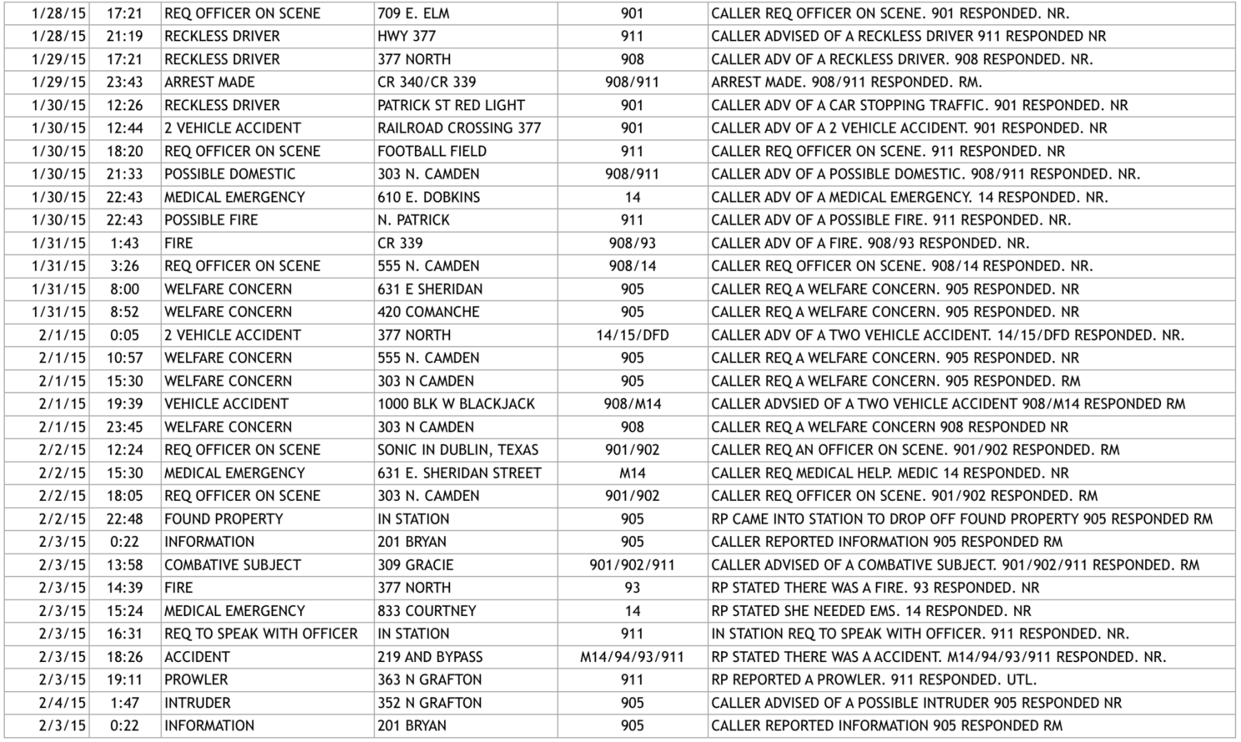 Below is a copy of the activity blotter by the Dublin Police Department for the dates of January 28 through February 4.