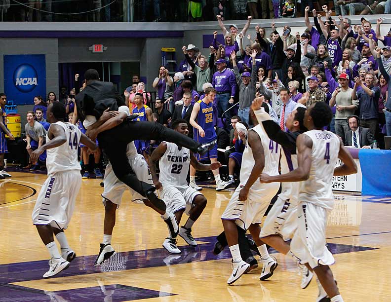 Regional celebration Tarleton State players celebrate a moment after the final buzzer sounded in their South Central Region Championship final victory over Lone Star Conference rival Angelo State. || Photo by RUSSELL HUFFMAN Like this:Like Loading...