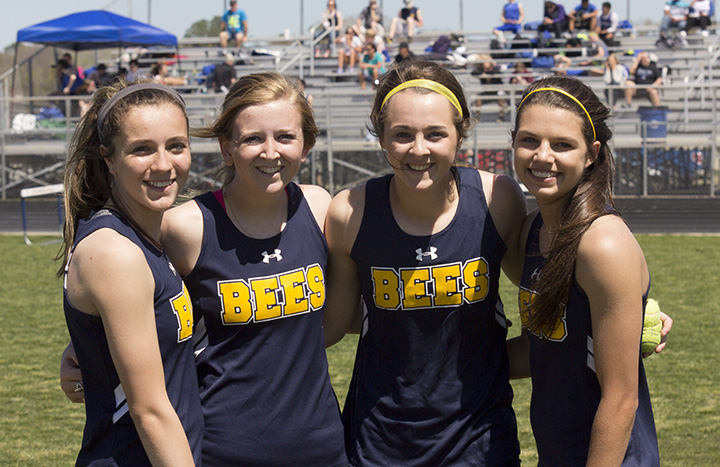 Winning the 4×200 relay for the Honeybees were (left to right) Hailey Martin, Maddi Cashell, Cassidy Cline and Kylee Ponder. || Photo courtesy Dr. CHET MARTIN
