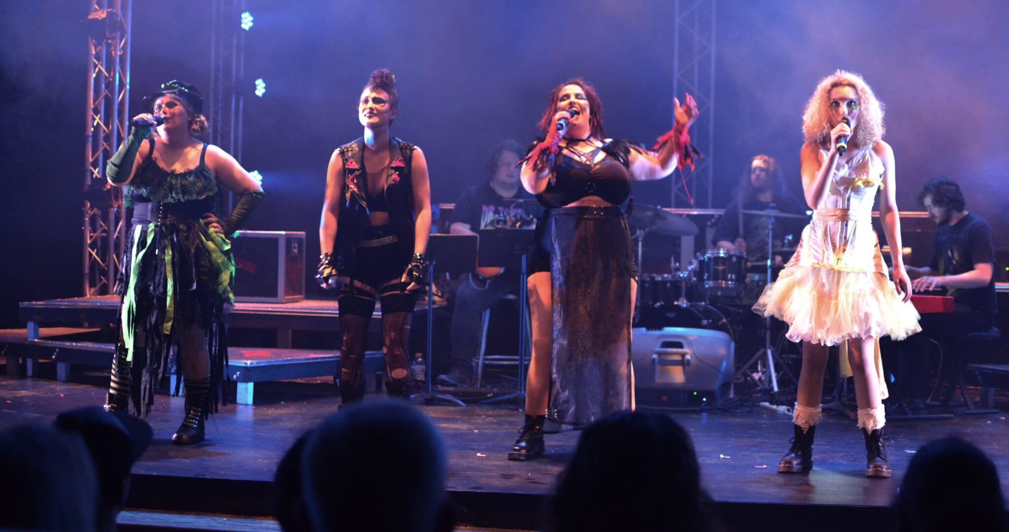Tarleton theater students, from left, Anna Lee Williams, Rebecca Franko, Benny Brown and Maddy Munn lead the cast of LIZZIE: The Musical. The production has been named by the to the short list of college productions for Kennedy Center American College Theater Festival regional competition as well as individual honors for members of the cast and crew.