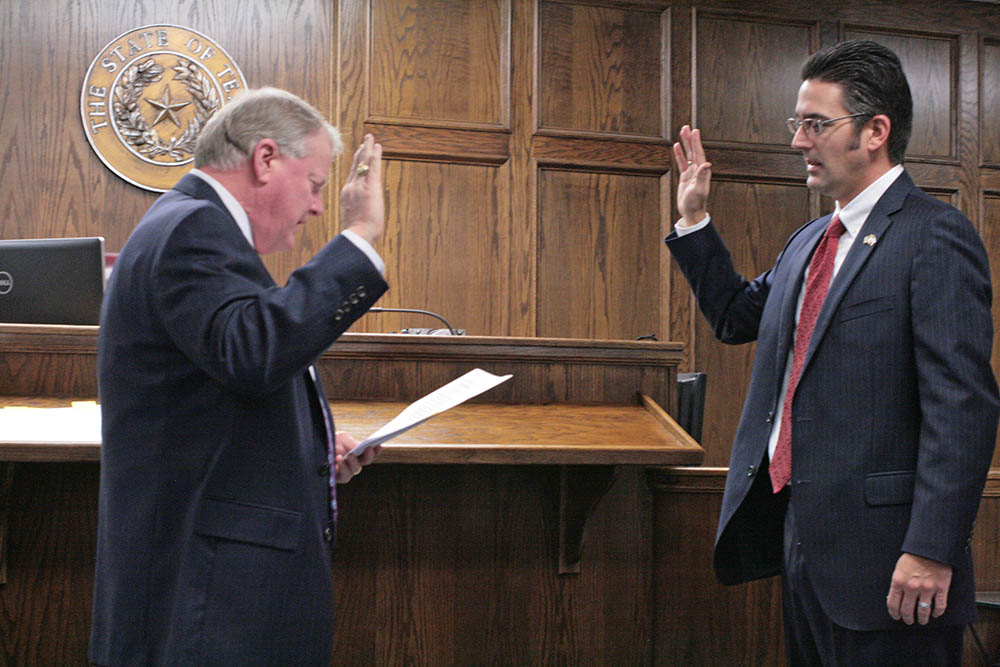 Swear-in 4 Erath County Judge Tab Thompson swears in County Court-at-Law Judge Blake Thompson Friday, Jan. 2. || Photo JESSIE HORTON Like this:Like Loading...