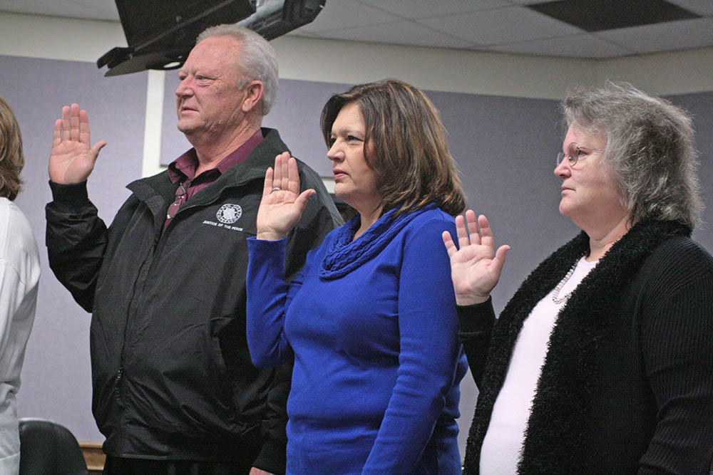 JP 2 – Bart Greenway, County Treasurer Donna Kelly and County Auditor Janet Martin take their oath. || Photo JESSIE HORTON